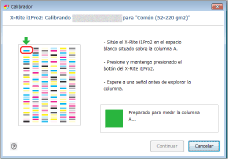 Coloque el espectrofotómetro, X-Rite i1 Pro 2, sobre el soporte y haga clic en [Continuar].