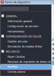 Haga clic en [Perfiles] en la pantalla del centro de dispositivos.
