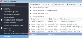 Un perfil de salida con el mismo nombre que el del ajuste de calibración que haya configurado en el paso 5 aparece en la lista como el perfil de salida para el papel en el que desea imprimir.