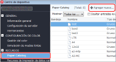 Haga clic en [Paper Catalog] → [Agregar nuevo] en la pantalla del centro de dispositivos.