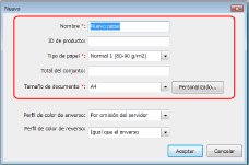Guarde los atributos del papel en el que desea imprimir en el imagePRESS Server.