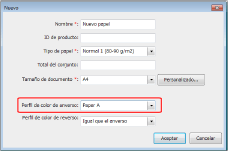 Si las superficies del anverso y el reverso del papel son diferentes, puede seleccionar [Perfil de color de reverso] y [Perfil de color de anverso] por separado.