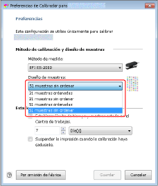 Seleccione la página de calibración que desea utilizar desde [Diseño de muestras].