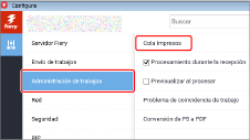 Haga clic en [Administración de trabajos] → [Cola Impresos].