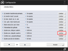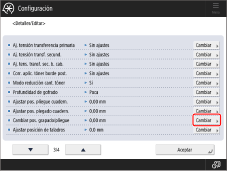 Seleccione en la lista el tipo de papel que desee editar → pulse <Detalles/ Editar> → <Cambiar> para <Cambiar pos. grapado/pliegue>.