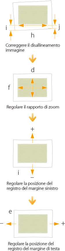 (marchi di registro) non sono allineati, regolare di nuovo la posizione dell'immagine nella sequenza illustrata di seguito.