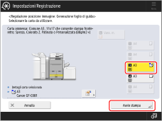 Selezionare la fonte alimentazione carta contenente il tipo di carta da regolare → premere <Avvio stampa>.