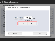 Sélectionner le type de papier à modifier à partir de la liste → appuyer sur <Détails/ Modif.> → <Modifier> sous <Régler la position du pli pour agrafage P.A.C.>.