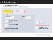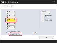 Wählen Sie <Normal 2 (76 g/m2 bis 90 g/m2)> als "ausgewählten Papiertyp".