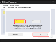 Berühren Sie die Taste <Ein> → berühren Sie die Taste <OK>.
