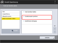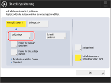 Wählen Sie das zu korrigierende Papier aus und berühren Sie die Taste anschließend <Initialisieren wenn Volljustage verw. wird>.