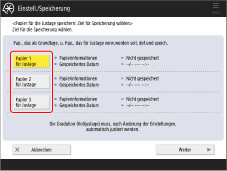 Wenn Sie das registrierte Papier aufgrund der Papierstärke geändert haben, bereiten Sie (zwei Typen von) Papieren in den Stärken vor, die Sie registrieren wollen.