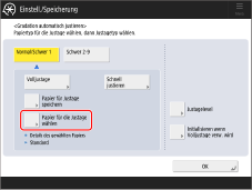 Wählen Sie das im Schritt 3 unter <Papier für die Justage wählen> registrierte Papier aus.