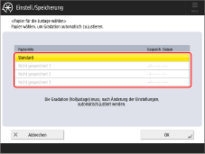 → <Justage/Wartung> → <Bildqualität justieren> → <Gradation automatisch justieren>, um das Papier auszuwählen.
