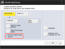 Wählen Sie <Standard> als "ausgewählten Papiertyp (Kalibrierungsstandard)" aus.