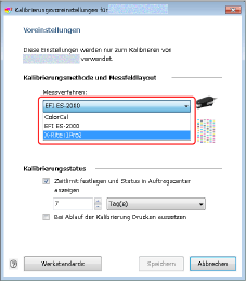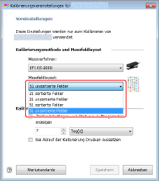 Wählen Sie in [Messfeldlayout] die Kalibrierungsseite aus, die Sie verwenden wollen.