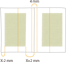 Wenn Sie [In der Mitte] für [Zentrierung anpassen] auswählen und "4,0" (mm) für [Bundsteg vergrößern um] einstellen