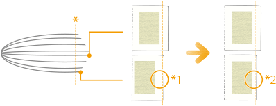 Wenn Bilder oder Text zu nahe an den Vorderkanten gedruckt werden, obwohl Sie die Druckposition auf die Mitte der Seite* einstellen, bestätigen Sie, dass der Wert für [Bundsteg vergrößern um] auf "0,0" gestellt ist. Wenn Sie z.B. "4,0" (mm) einstellen, werden die Bilder und Text auf den linken und rechten Seiten um 2 mm zu der Vorderkante verschoben. Wenn sich ein Bild auf dem Bundsteg befindet, stellen Sie einen negativen Wert ein, um den Rand zum Bundsteg zu verschieben.