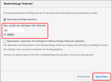 Ändern Sie die Anzahl in [Max. Anzahl der Aufträge in WS 'Gedruckt':] und klicken Sie auf [Speichern].