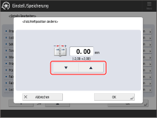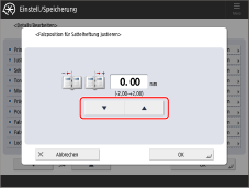 Wenn Sie die Position der Sattelheftung nach rechts während auf die bedruckte Seite des Ausdrucks gerichtet verschieben wollen, geben Sie einen höheren Wert ein.