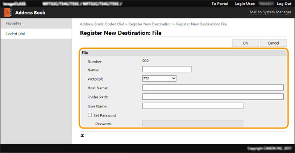 Registering an FTP Server Destination in the Address Book (Remote UI)