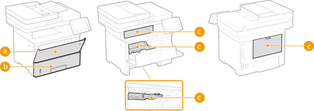 If paper is loaded in the multi-purpose tray, remove it first before working. If the jammed paper cannot be removed easily, do not pull it out forcibly. Go to the next step.