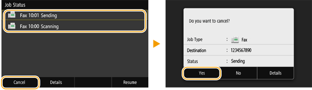 The originals are already scanned and are waiting to be sent. Select the fax document you want to cancel, and then select <Cancel>