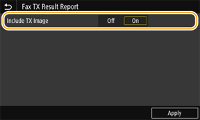 If you want to include a part of the transmitted original in the transmission result report, select <On> for <Include TX Image>.