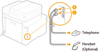 When connecting an optional handset: Connect the telephone line from the handset to the handset jack