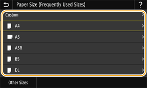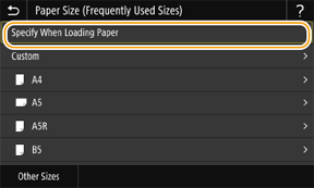 If the paper size of the loaded paper is not displayed, select <Other Sizes>.