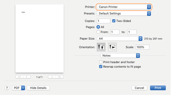 Printing from a Mac computer