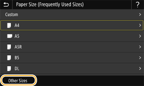 If the paper size of the loaded paper is not displayed, select <Other Sizes>.