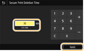 Change the period of time until which a secured document is preserved in the memory, and then select <Apply>.