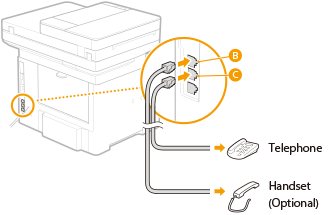 When connecting an optional handset: Connect the telephone line from the handset to the handset jack