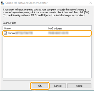 When connecting the machine to a computer via wireless LAN or wired LAN, register the machine in "MF Network Scanner Selector".