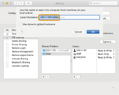 You can enable the machine to access and send scanned data to a shared folder on a Mac.
