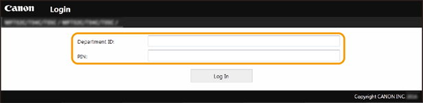 Enter the registered [Department ID] and [PIN], and then click [Log In].
