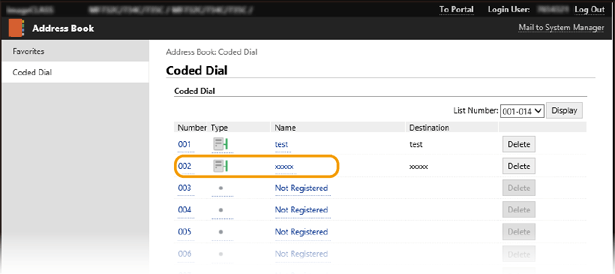 Click [Number], [Type], or [Name] for an item with "Not Registered" displayed.