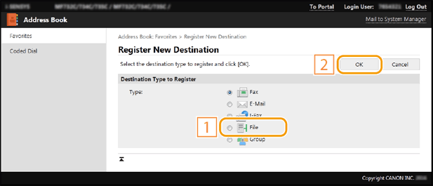 If the folder to store the document does not exist, a folder with the specified name is created when the document is sent. However, if you specify a location 2 or more hierarchy levels away that does not exist, or if you do not have write permission to the parent folder, the folder is not created and a transmission error occurs.