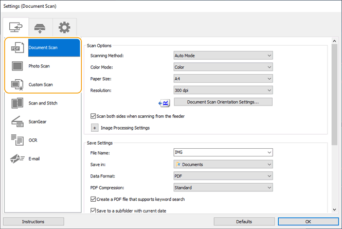 Select [Document Scan], [Photo Scan], or [Custom Scan].