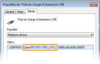 Vérifiez si la [Prise en charge d’impression USB] est affichée dans le gestionnaire de périphériques.