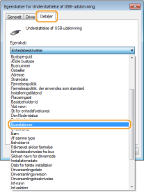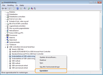 Åbn [USB-controllere (Universal Serial Bus)], og kontroller, at [Understøttelse af USB-udskrivning] vises.