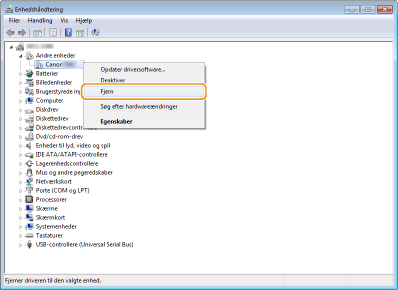 Højreklik på [Ukendt enhed], og klik på [Fjern].