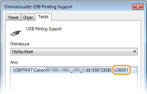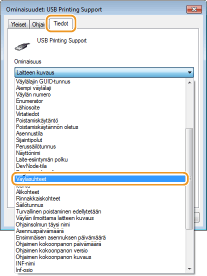 Kun [USB Printing Support] näytetään