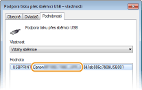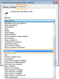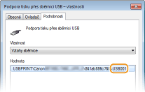 Zkontrolujte, zda se zobrazí [Podpora tisku přes sběrnici USB] ve funkci Device Manager (správce zařízení).
