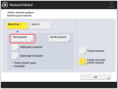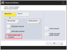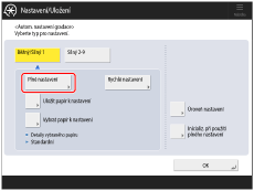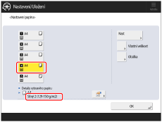 → <Možnosti> → <Nastavení papíru> → <Nastavení papíru> a nastavte typ papíru.