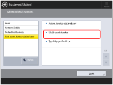 Pokud se přepíší standardy pro kalibraci, data budou ztracena. Při ukládání nového standardu kalibrace pro papír, který chcete použít pro kalibraci, dávejte pozor, abyste nepřepsali standard pro kalibraci papíru „Canon Top Colour Zero FSC (81,4 g/m2)“.