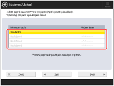 Vyberte typ papíru uložený v kroku 3 v části <Vybrat papír k nastavení>.