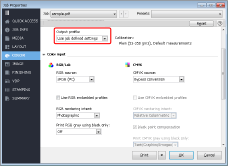 Pokud vyberete [Bypass conversion] v [CMYK source], výstupní profil se nepoužije. Použije se pouze nastavení kalibrace propojené s vybraným výstupním profilem.