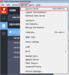 Klikněte na [Server] → [Device Center] v aplikaci Command WorkStation.